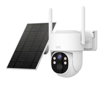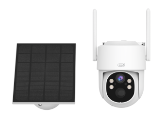 Поворотная Wi-Fi видеокамера с разрешением 4Мп, панорамным обзором, ИК подсветкой и LED диодами, AI-детекцией человека, детекцией звука и функцией патрулирования. Для установки вне помещений. Питание от солнечной панели.